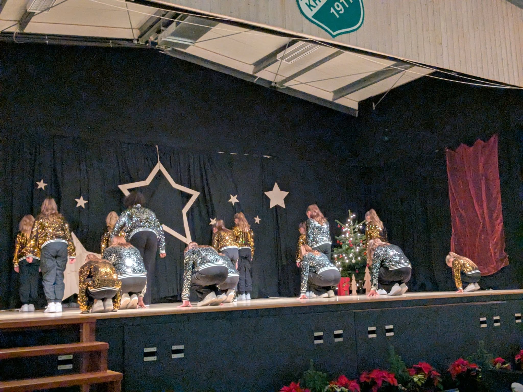 Dies machte sich auch bei der Weihnachtsfeier bemerkbar. Viele helfende Hände hatten die Sauberghalle wieder in einen festlichen Glanz versetzt. Sogar das weihnachtliche Menü für mehr als 150 Personen war durch Julia Schütz vom Veranstaltungsausschuss des TSV und zahlreichen Helfern selbst zubereitet worden. Tannenbäume, Lichterketten und Kerzenschein sorgten für ein heimeliges Ambiente, zu welchem die Harmonie Brombach-Kröckelbach die passende Musik lieferte. Mit dem Männerchor und dem gemischten Chor „Little Harmonie“ stimmte sie das Publikum mit „Selige Weihnachtszeit“, „Weihnachtsglöckchen“, „Ehrenwort“, „Carol oft the Bells“ und „Weit weit weg“ auf das nahende Weihnachtsfest ein. Die Mädels der Show Dance Gruppe der Fürther Tanzschule „Dance Passion“ stürmten in ihren silber- und goldglitzernden Outfits die Bühne und begeisterten mit einer perfekt einstudierten Choreographie. Eine Zugabe wurde den Gästen gerne gewährt. Nicht fehlen durften die Ehrungen für 25-jährige und 50-jährige Vereinsmitgliedschaft, ebenso, wie die Würdigung der Ehrenmitglieder und die traditionelle Tombola, die in jedem Jahr, neben tollen Gewinnen, für jede Menge Spaß sorgt.