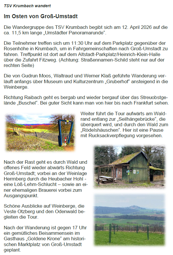 TSV Krumbach wandert im Osten von Groß-Umstadt